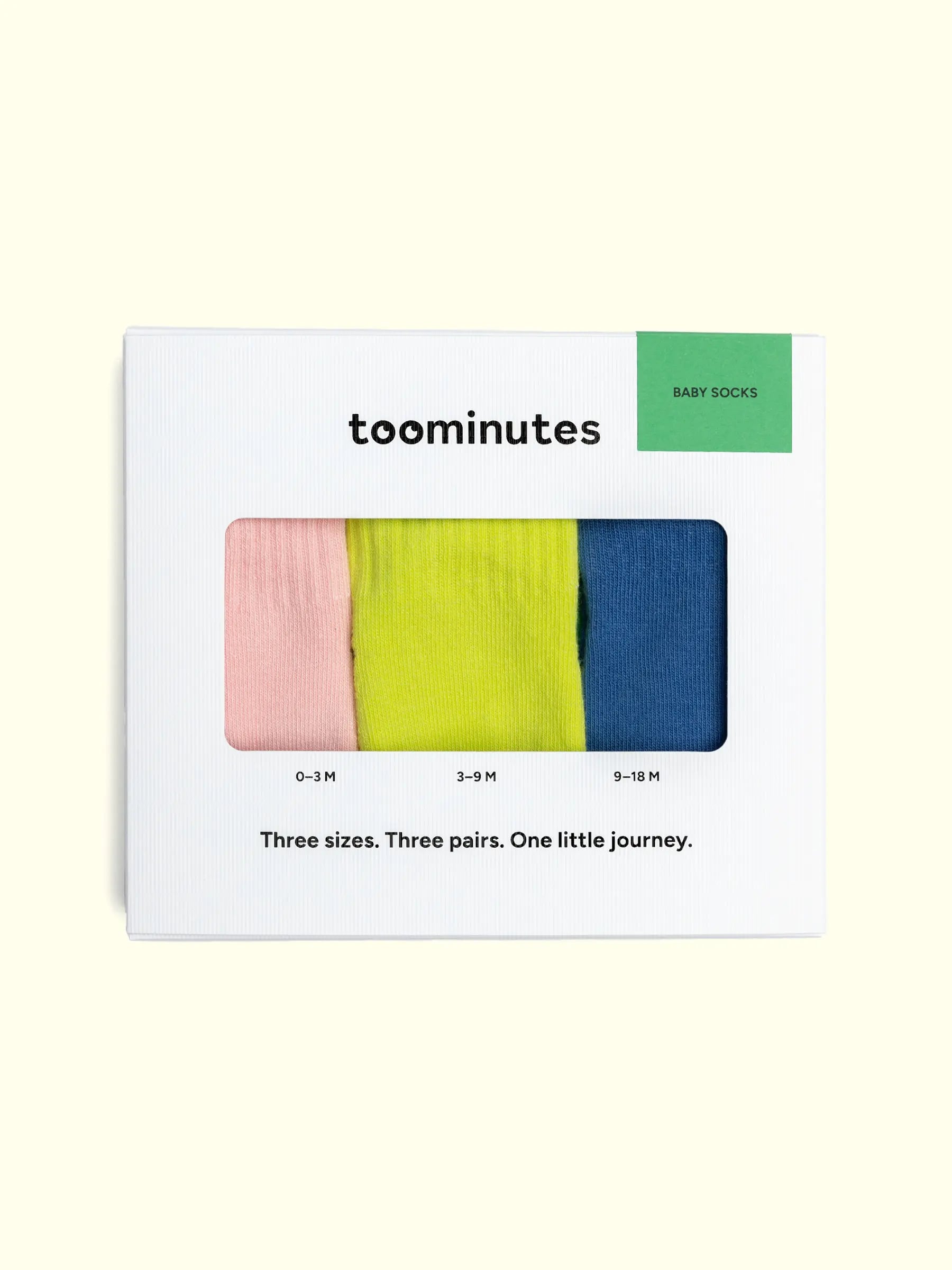 Toominutes was born from a simple idea: babies grow too fast. That’s why each of our bundles holds three pairs – designed to mark their first little milestones at 3, 9, and 18 months. A gesture of care, a memory to hold, and a design to grow into. Don’t count the socks, count the steps you’ll take together.
